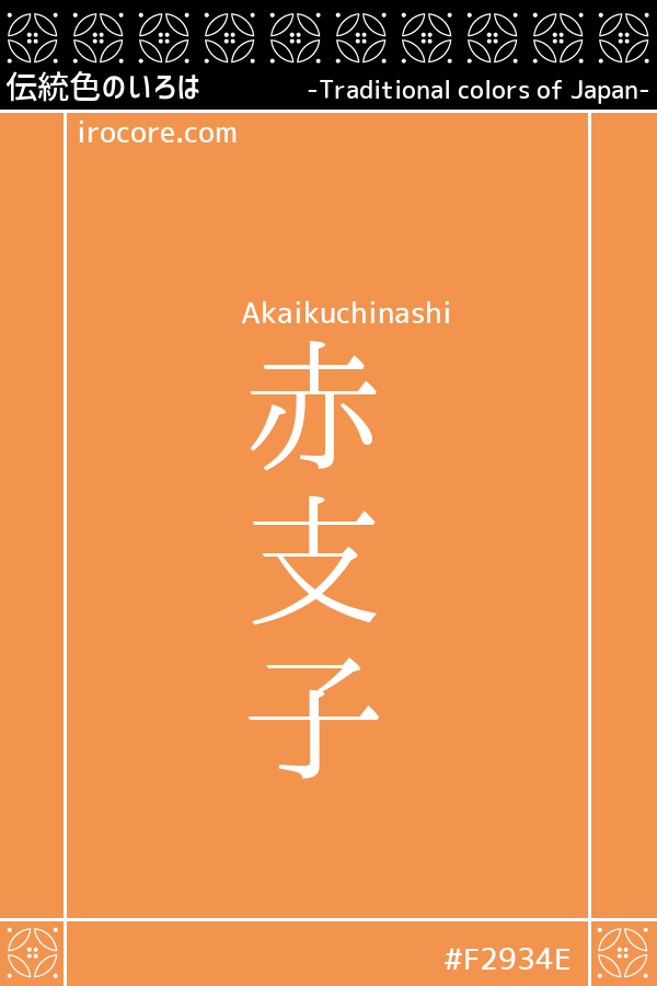 Color name of "Kuchinashi" is seen from the Heian period, but was only originally Kuchinashi-iro, it was divided into three types of "Kokikuchinashi", "Kikuchinashi" "Asakikuchinashi". By the way, staining of Akakuchinashi is the same staining method and Kokikuchinashi marked in "Nidonoryo" of "Engishiki" of the Heian period, it seems to have become to be known as "Akakuchinashi" that time of from or redness Kuchinashi-iro.