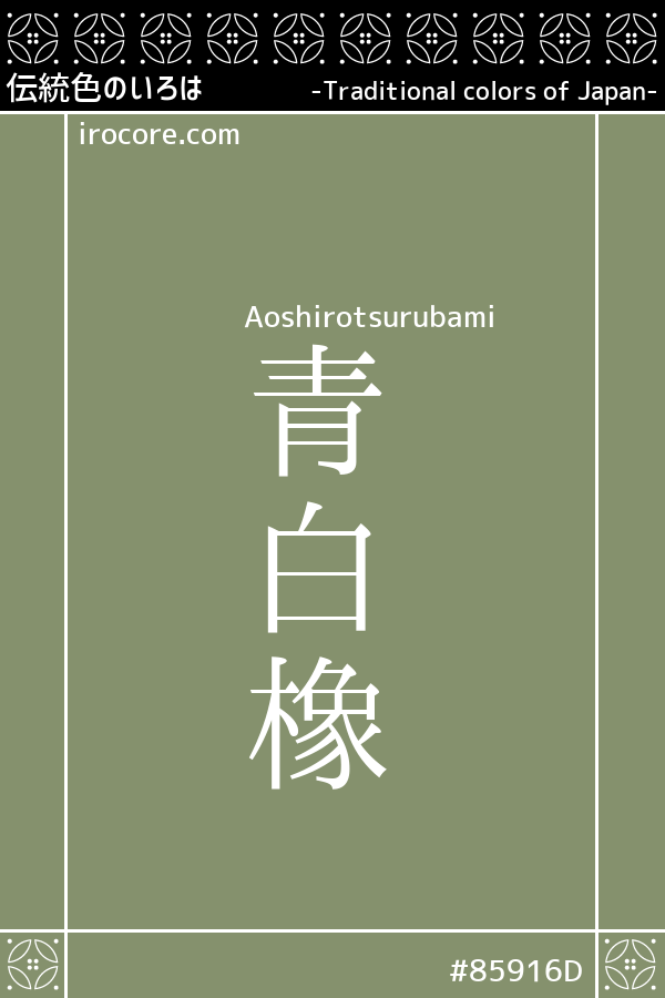 The Aoshirotsurubami, it is that of Lincoln green with Hai-mi. There is a "blue-white horse chestnut one thing Azcans Kojichiri" etiquette manual of annual events of the royal court to "Saiguki", and it is the same color as the "Kikujin". It has been described as "The Blue Shirotsurubami" peace literature to "Eigamonogatari", it was called "Ao-iro" generally.