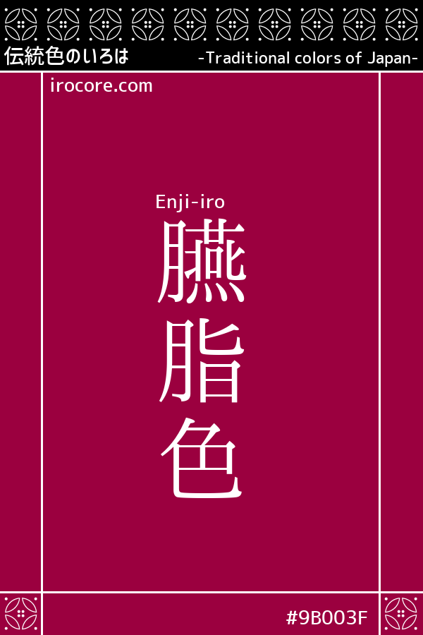 The Enji-iro is a deeply glossy red color that is blackened. The color of the pigment transmitted from China ancient times. The name of Enji-iro originates from the color of ancient Chinese cosmetic crimson.
