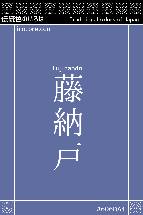 The Fujinando, it is a pale blue purple tinged with Hai-mi. As "Fujigo closet". "Closet color" is a typical bluish color was popular in the Edo era, with the dark color of the NAND, is also said to be the color of the banner of the NAND. In color which is a combination of "mauve" which was loved by many women from the old days of peace in its color, it seems to be a color name that was able to late Edo period.