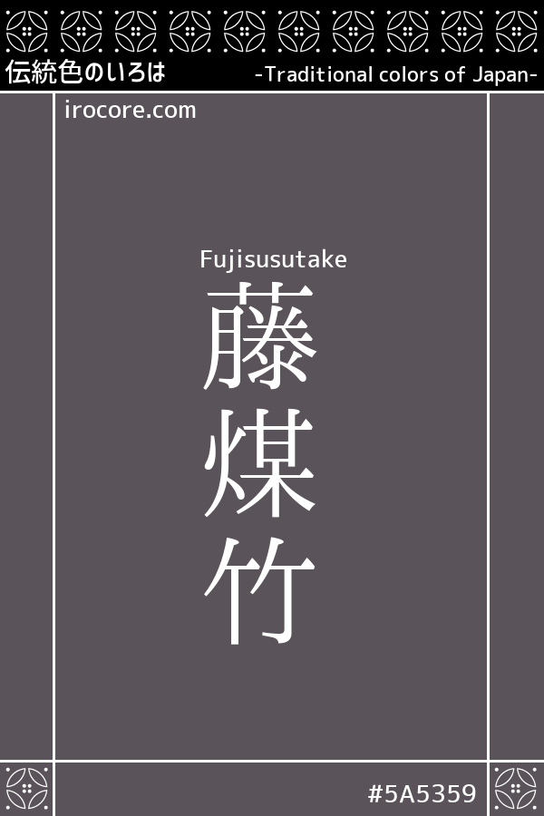 藤煤竹(ふじすすたけ)とは、藤色がかった煤竹色 で赤みの暗い灰紫色のことです。