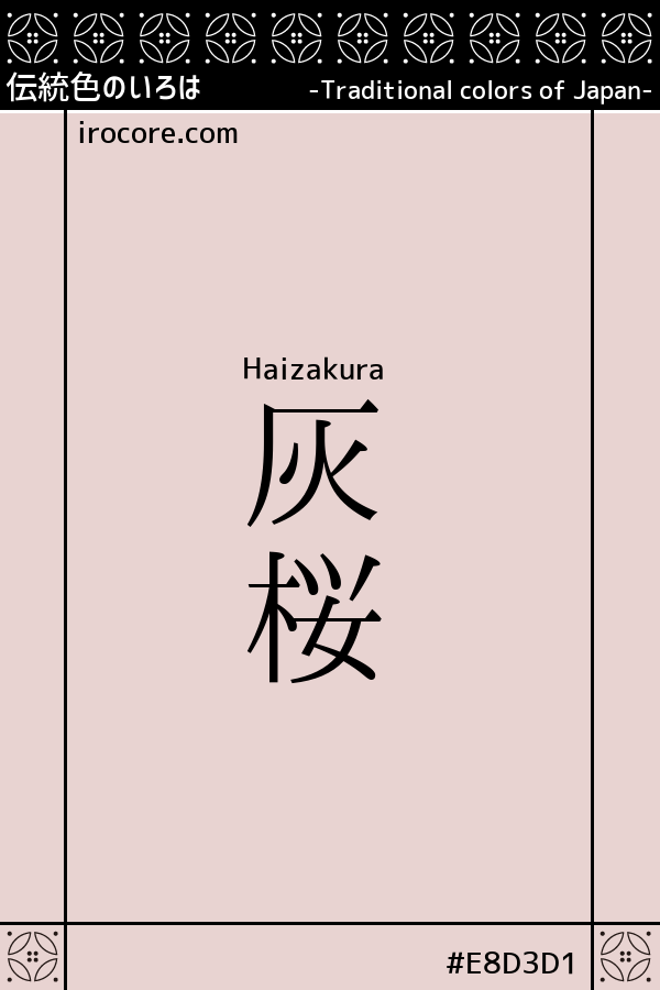 The Haizakura, it is a bright cherry color grayish somewhat. Usuzumi won the cerise "Sakura-Nezumi" has the same system, but may be more bright texture is soft. It seems from the fact that in the sense of cerise containing the ashes literally taste, it is often used in modern times, color and name that appeared in the modern era as etymology.