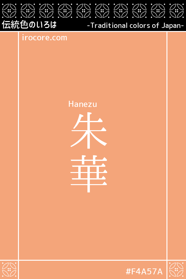 Hanezu is yellowish, light red. It was a traditional traditional color whose name is also found in "Manyoshu", and there were also cases in which the letters such as "波泥孺", "唐棣花", "棠棣", "翼酢" were applied.