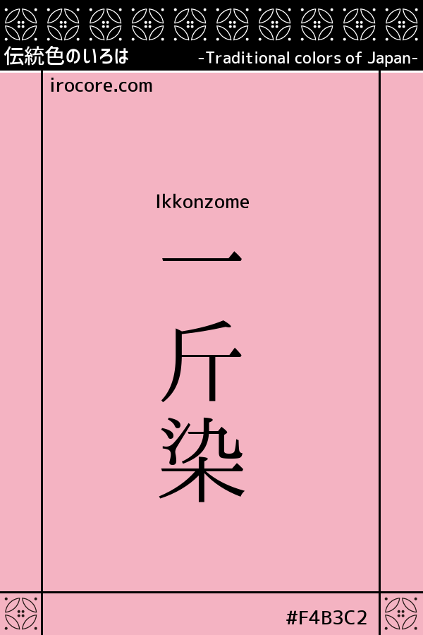 The Ikkonzome is a pale red that is dyed with silk gauze 600g of dye. In the Heian period, as the safflower was expensive, the dark red dye was considered as "Kinjiki" and was prohibited from wearing without permission of the Emperor. However, in the case of a thin red dye such as one drop stain, it is permitted to wear something of low status as "Yurushiiro", and from this, Ikkonzome's alias is also called "Yurushiiro".