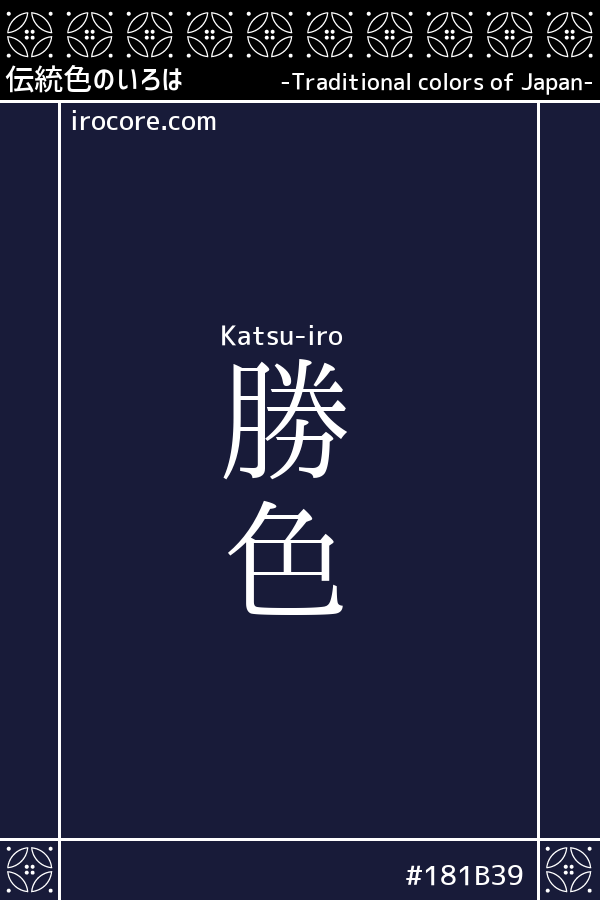鎌倉時代になると武士たちが濃い藍染の質実剛健さを好み、さらに「かつ」に「勝」の字をあてて縁起色としたのが色名の由来です。
