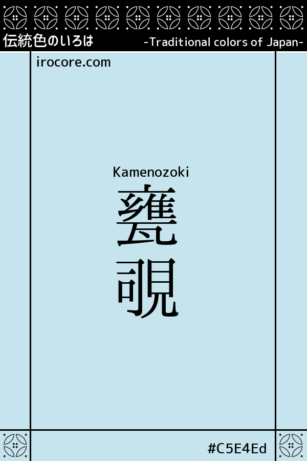 The Kamenozoki, it is a soft greenish blue in color name that points to the pale blue of Aizen. Alias "Nozoki-iro". Aizen remove it is with a cloth or thread to many times aiu Aigame, put it is going dyed darker repeatedly that can take out with but, Kamenozoki only dyed to the extent that it was soaked a little white cloth, or The color name attached in the sense that only peeped little the jar. However, essentially it is a metaphorical expression, it does not actually that kind of dyed way. Separately, there is also a theory that such color peep people the color of the sky, which reflected on the surface of the water, which has been stretched to the jar, it is the color name quite playful.