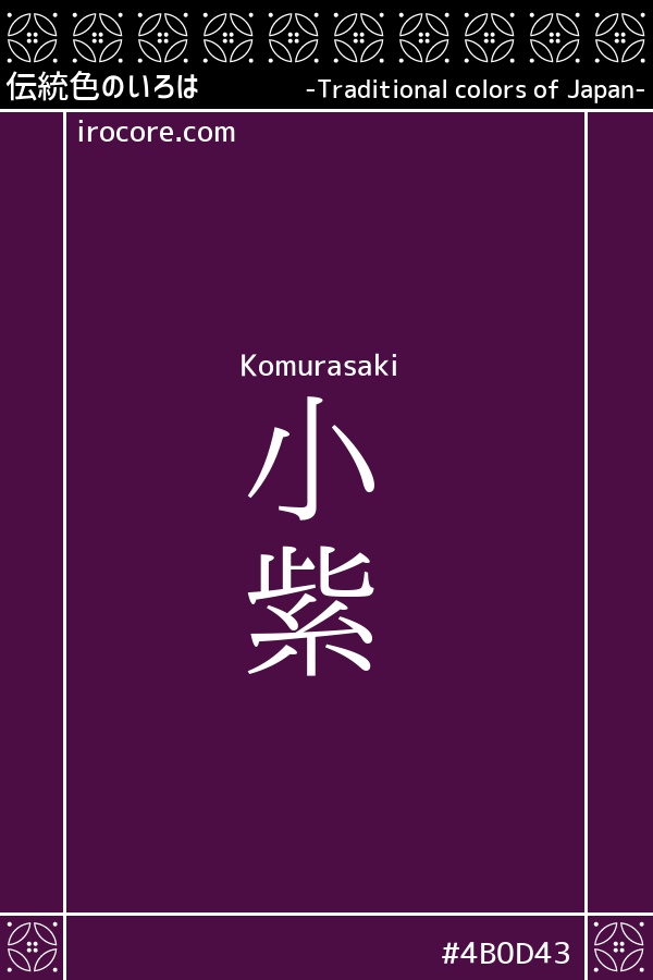 Originally written as "濃紫", the small purple is similar in color to the real color of Komurasaki, it seems from when it was established as a color name small purple.