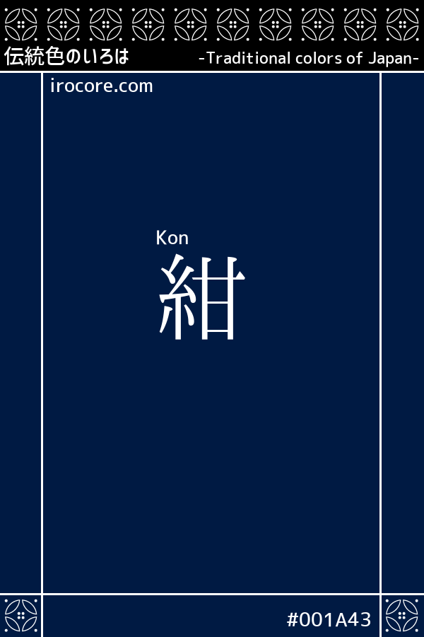 The Kon, in the darkest color in the Aizome, is slightly dark blue that includes redness. Old is referred to as the "Fukakihanada", will also be seen that name to "Engishiki" of the Heian period. By the way, "Hanada" is that of the old days of the blue.