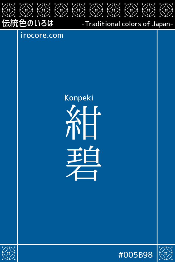 The Konpeki, it is the deep dark blue, such as the color of strong blue sky of summer sunshine. From the fact that characters that represent the blue and "Heki" in the dark blue of strong blue-green as "Kon" is repeated, it is often used in dark beautiful blue representation of as "Konpekinosora" "Konpekinoumi".