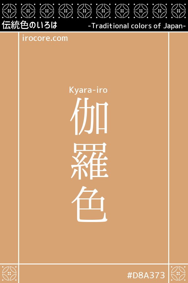 The Kyara-iro, it is a dark tan brownish. A kind of agarwood trees, aloes-wood is the place of origin is Southeast Asia such as Thailand and Vietnam. Kyara is special among the agarwood tree for a long time, and has been prized as Nakao best in incense burning. By the way, it is a word that was translated from Han Kiyara which means black in Sanskrit and aloes-wood. Tan named after the character is is this color.
