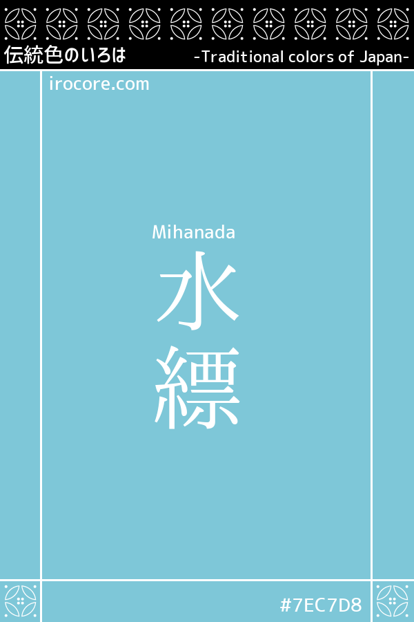 The Mihanada, is a thin bright blue with a thin color of Aizome. Apart it is also read as "Mizuhanada", also in "Manyoshu" is the name seen. It had up to the time of the Middle Ages used a mix of the old color name of "Mizu-iro". However, completely "Mizu-iro" will lead to a result today today in the mainstream when it comes to the time of the Edo.