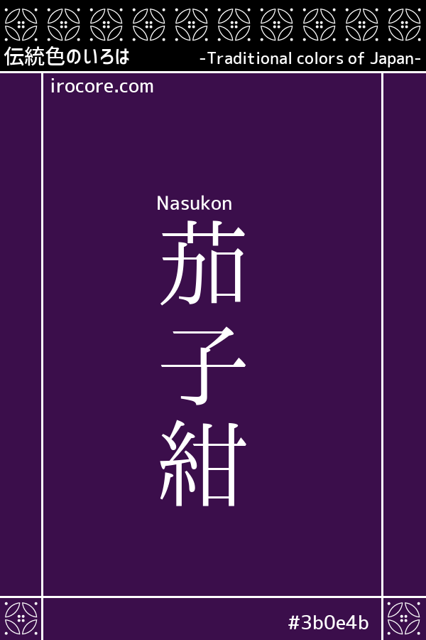 Nasukon (茄子紺) refers to a deep, reddish navy blue color, reminiscent of the skin of an eggplant, a summer vegetable familiar to many.