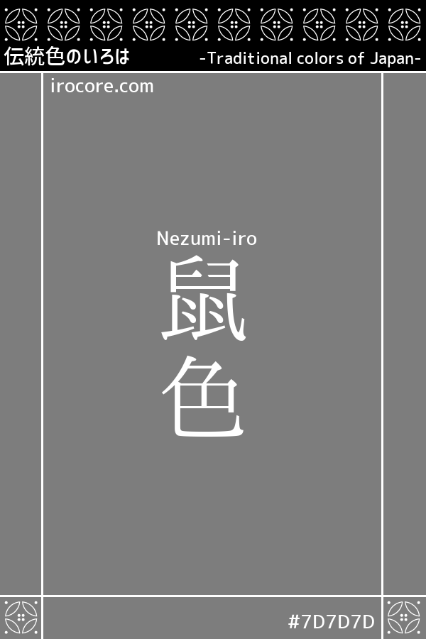 The Nezumi-iro, is the color name that points to a dark gray, and gray system in general, such as the color of the hair of the rat. Color name that was born through the Edo period from the Muromachi late. "Sunezumi" "Omeshinezu" is the same color, in ancient times was called as "Nibi-iro" and "Usuzumi".
