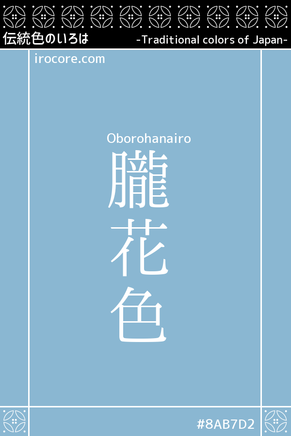 The term "Oboro (朧)" means "indistinct" or "hazy," evoking an ethereal impression reminiscent of landscapes enveloped in nighttime mist or haze. From this imagery, a slightly muted and misty variation of Hanairo came to be called "Oboro Hanairo", and this name was eventually established as a color term.