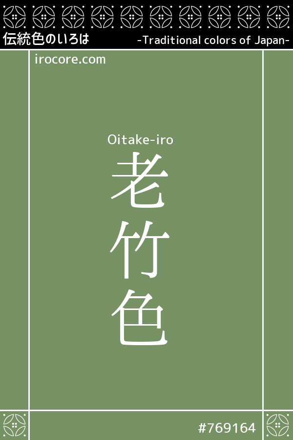 The Oitake-iro is that like the old bamboo tinged Hai-mi of meaning over the years, green grayish and somewhat dull. If you set the hue to young bamboo bamboo color and color fresh youthful, Canal Hai-mi tinged. Compared to the bright tone of "Waka", "Oi" has traditionally been used by the dull colors dull tradition expression name. By the way, there is a color name of Susutake color with that color of bamboo tinged patina sooty, but Susutake color is brown.