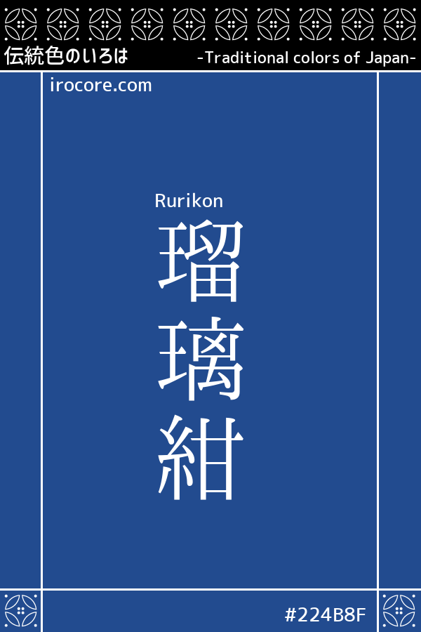 The Rurikon, in the sense of dark blue lapis lazuli color tinged, it is the deep blue of Purplish. Also known as "Konruri". The color name in tradition is also found in scripture as the color of the Land or the Buddha Land and hair of the Buddha.