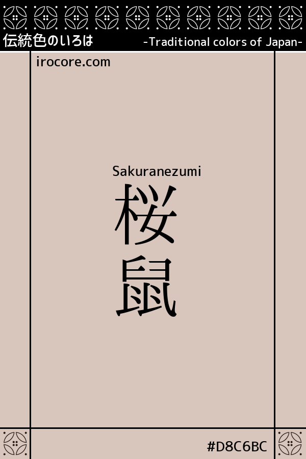 The Sakuranezumi, pale red color is greenish gray or Usuzumi, it is a pale cherry color dull slightly. Sakura Sumizome of so-called . Color stick is mouse to color name can be seen from the early Edo period around, but I think Sakura rats with or not began to be used in the Genroku later. By the way, there is a "Umenezumi" in other colors with a "rat" in the name.