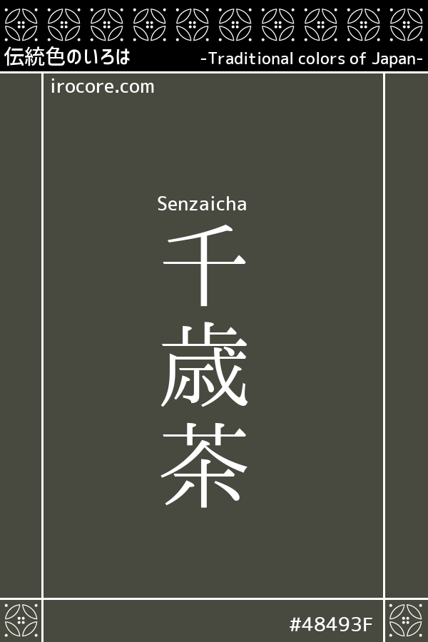 The Senzaicha, by the dark green brown brown was mowed Chitose green, it is written "千哉", "千才" as "仙斎". As is said, "forty-eight tea hundred rat" in the Edo era, various intermediate colors were Desoroi, but neutral bitter yellowish green systems, such as Chitose tea as well as such as Mei tea was also known as tea. By the time of Bunsei, in addition to was used to Crested pongee of women, it seems to have also used cotton men's.