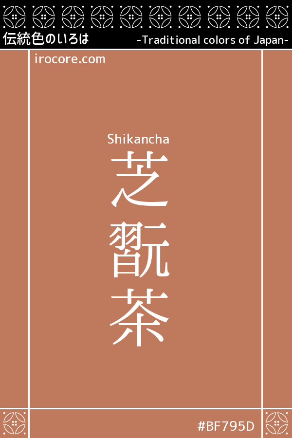 The Shikancha, is a somewhat dull bitter red brown. The late Edo period Osaka of star actor, was all the rage at the time as a color that favored the third generation "Utaemon Nakamura". Color names, from haiku poet's name "Shikan" of Utaemon, is the meaning of "Shikan Cha favorite".
