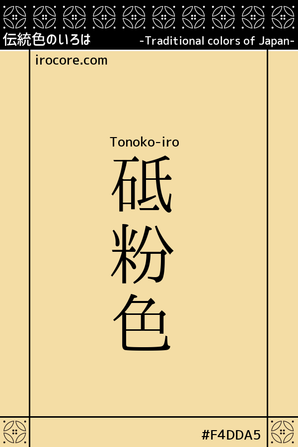 The Tonoko-iro, is redness of the dull yellow. The color names that come to the grindstone of flour "Tonoko" out when edged knives as grindstone name.