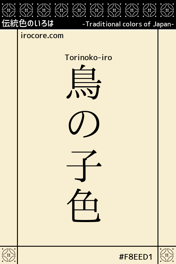 The Torinoko-iro, it is a reddish very pale yellow. In color from the Kamakura period, the "Torinoko" of color name refers to the egg rather than a chick chicken, was derived from the color of the shell. In addition, there is also a traditional color named "Tamago-iro", but this is a bright yellow derived from the yolk rather than the color of the shell.