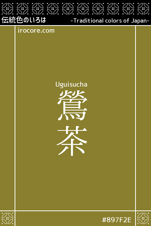 Uguisu-cha (鶯茶) is a subdued yellow-green color with a brownish tint, resembling the hue of a nightingale's back feathers. It became a widely used dye color from the mid-Edo period onward and, along with Miru-cha (海松色), remains one of the few traditional Japanese color names in the yellow-green spectrum still in use today.