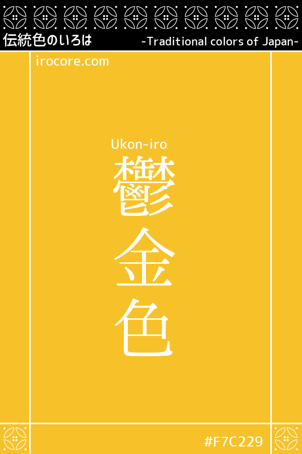 The Ukon-iro, is the vivid yellow of redness that was dyed with turmeric grassroots. The English name "turmeric". The time period color that stands out a flashy were preferred Edo is, meaning next to "Ake-iro" in the red group are lovers as the background color of Tsumugi and kimono, also character called "鬱金" is referred to as "gold increases actively" from the fact that lead to, it was a popular color as staining, such as a purse or a pipe dream for good luck.
