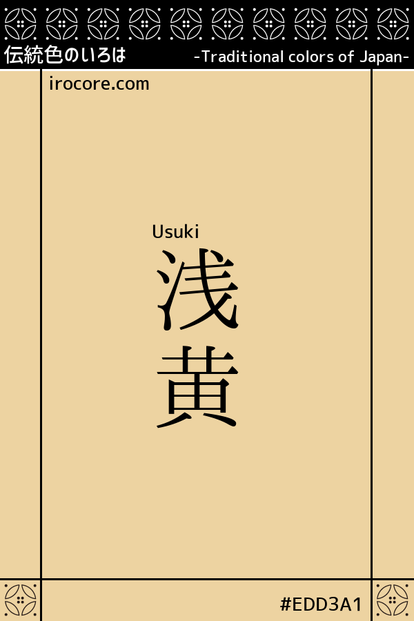 The Usuki is a light yellow dyed lightly with persimmon and lye. It is an old color name written in the "Heisei-style" Enki-style, and is the opposite of "Fukakiki". The old name is read as “Asagi” and “Asakiki” and “Asaki” separately.