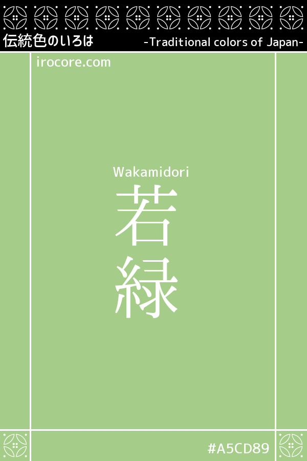 The only other colors that are related to fresh green like "Wakamidori" are "Moegi-iro," "Wakakusa-iro," and "Wakame-iro," all of which are more yellowish and vivid in color compared to young green.