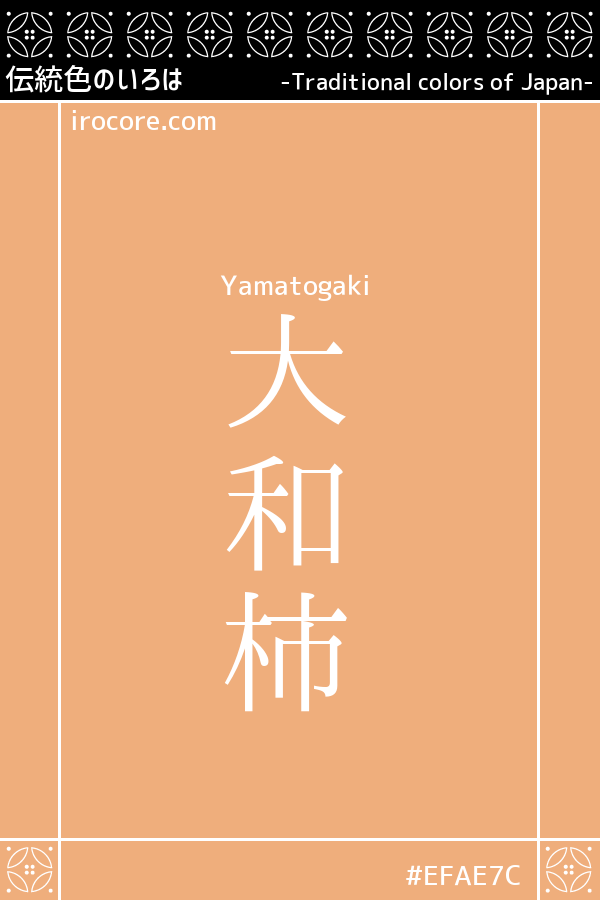 The Yamatogaki, derived from the popular actor of the Edo era, is a somewhat dull bright orange. Marked with the "Cha," but "Kaki-iro" the color, such as a thin disk. It should be noted, is also the varieties of fruit of persimmon is the "Yamatogaki", here is the meaning of "Yamato local persimmon", not related to the color name.