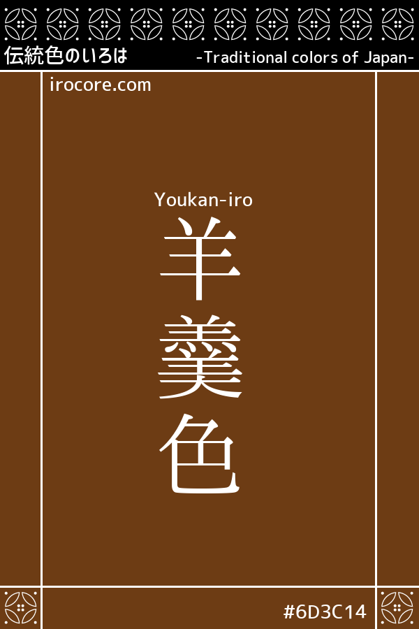 The Youkan-iro, is a dark brown tinged with slight redness, such as jelly confectionery as its name. In color name from the Edo era, it is to "Somemonochouhouki" has been referred to as the same color as the "Momoshiocha".