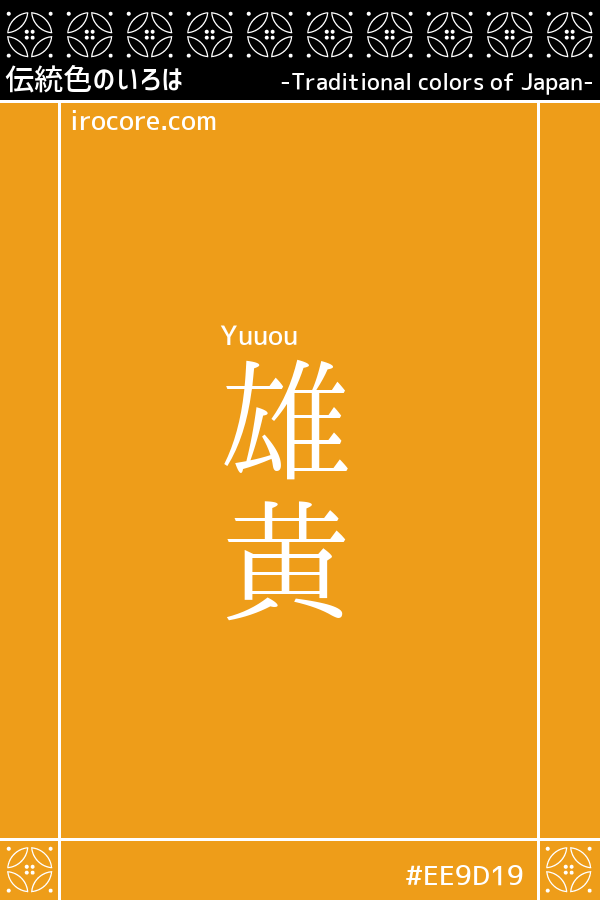 The Yuuou, it is a bright vivid yellow. Color pigments made from "stone yellow" mineral mainly composed of arsenic sulfide, arsenic. The orpiment there is an alias of "Oki", is the origin of the color name.