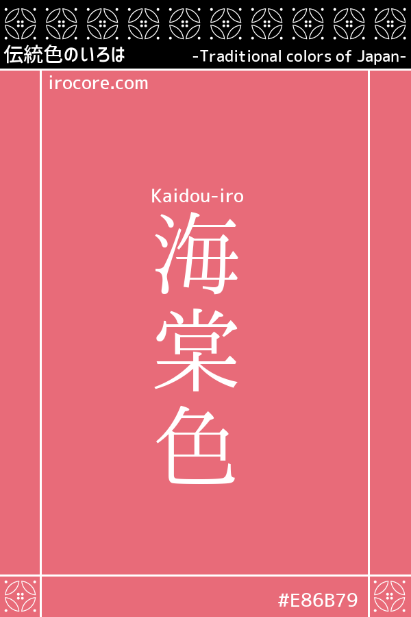 The Kaido-iro is a pale red color like the flowers of the beautiful cherry blossom-like flowering crabapple tree in spring. The name "Kaido-iro" literally comes from the flower of the Kaido, which gave rise to the color name.