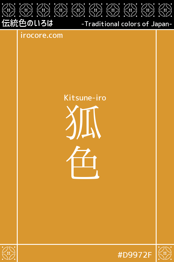 The Kitsune-iro, it is a yellow-brown slightly reddish tint similar to the coat color of fox. When to burn the so-called "powder thing", it is often used when expressing "surface has become golden brown brown" or the state that have burned in good condition.